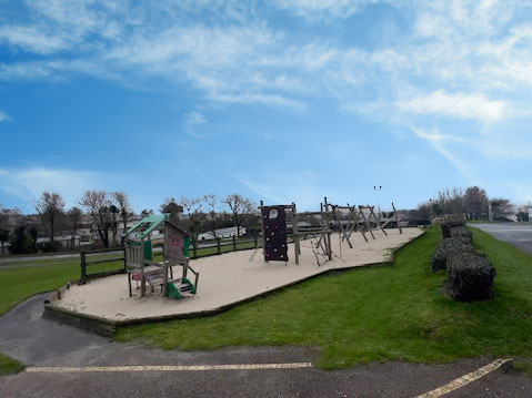 Parking is next to the caravan and there is a playground opposite the veranda that has patio furniture.